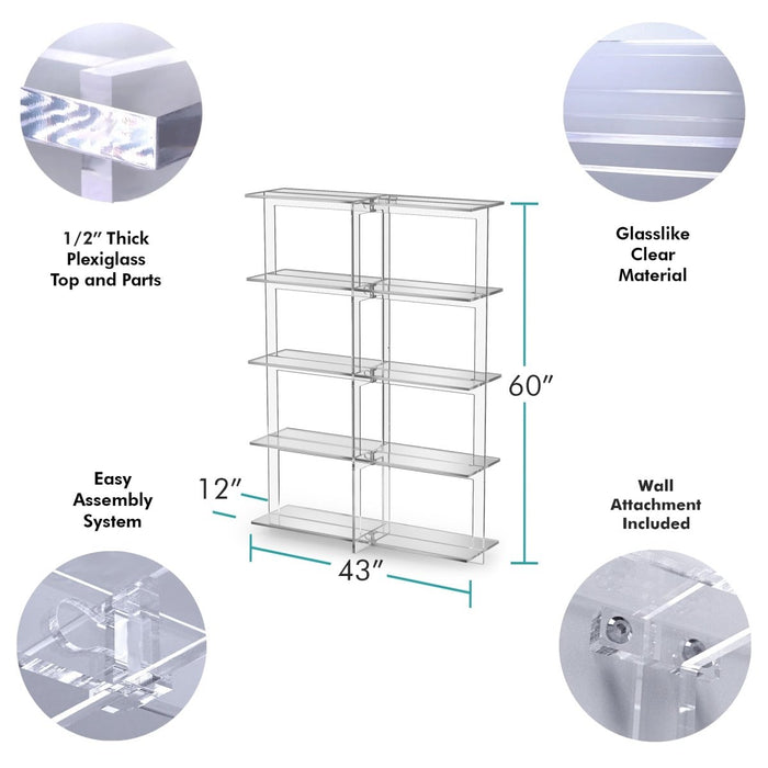 - Features: With no metal or hardware to block the view, this clear acrylic etagere is the perfect display to put your art in the spotlight.