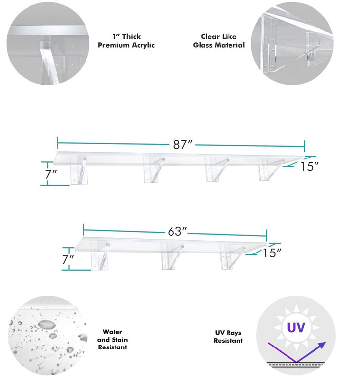 Heavy Duty Clear Shelf with Glacier Brackets - 87 inches