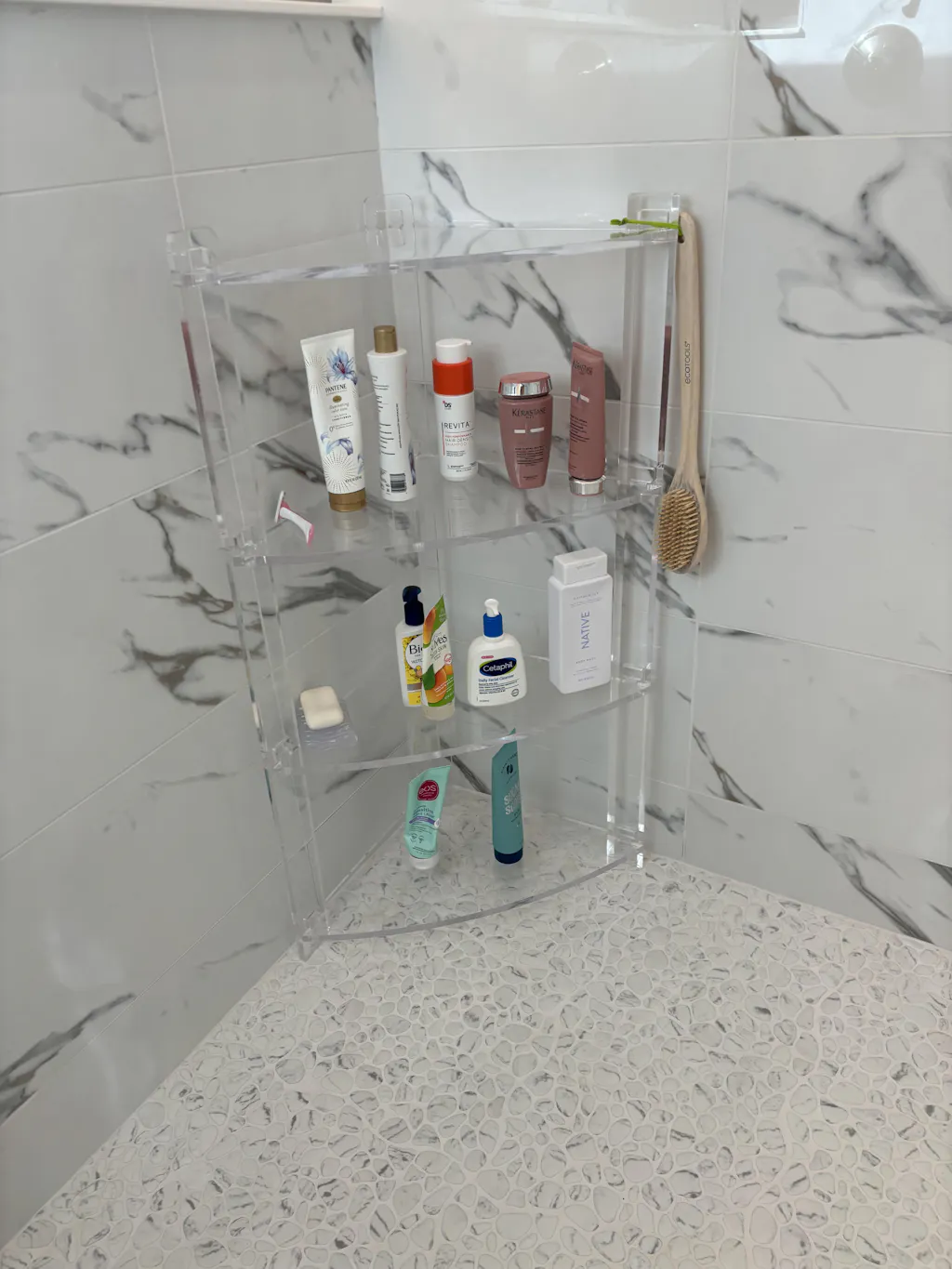 This sleek acrylic corner caddy is the ideal shelving and storage area for modern showers and bathrooms. Our premium clear acrylic is ideal for the bathroom and shower environment. It is shatter-proof and withstands regular attacks from hot water and bathroom chemicals. There are no issues involving rust, yellowing, or rot as with some other materials, so this naturally mold resistant acrylic will remain crystal clear for decades.