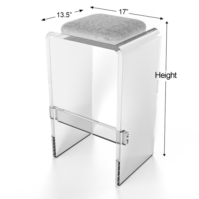 Designed with a seamless, glossy acrylic frame, this stool boasts a stunning waterfall silhouette that adds a modern touch to any bar, kitchen island, or entertainment area. The plush microsuede cushion provides exceptional comfort, while the integrated footrest ensures a relaxed seating experience.