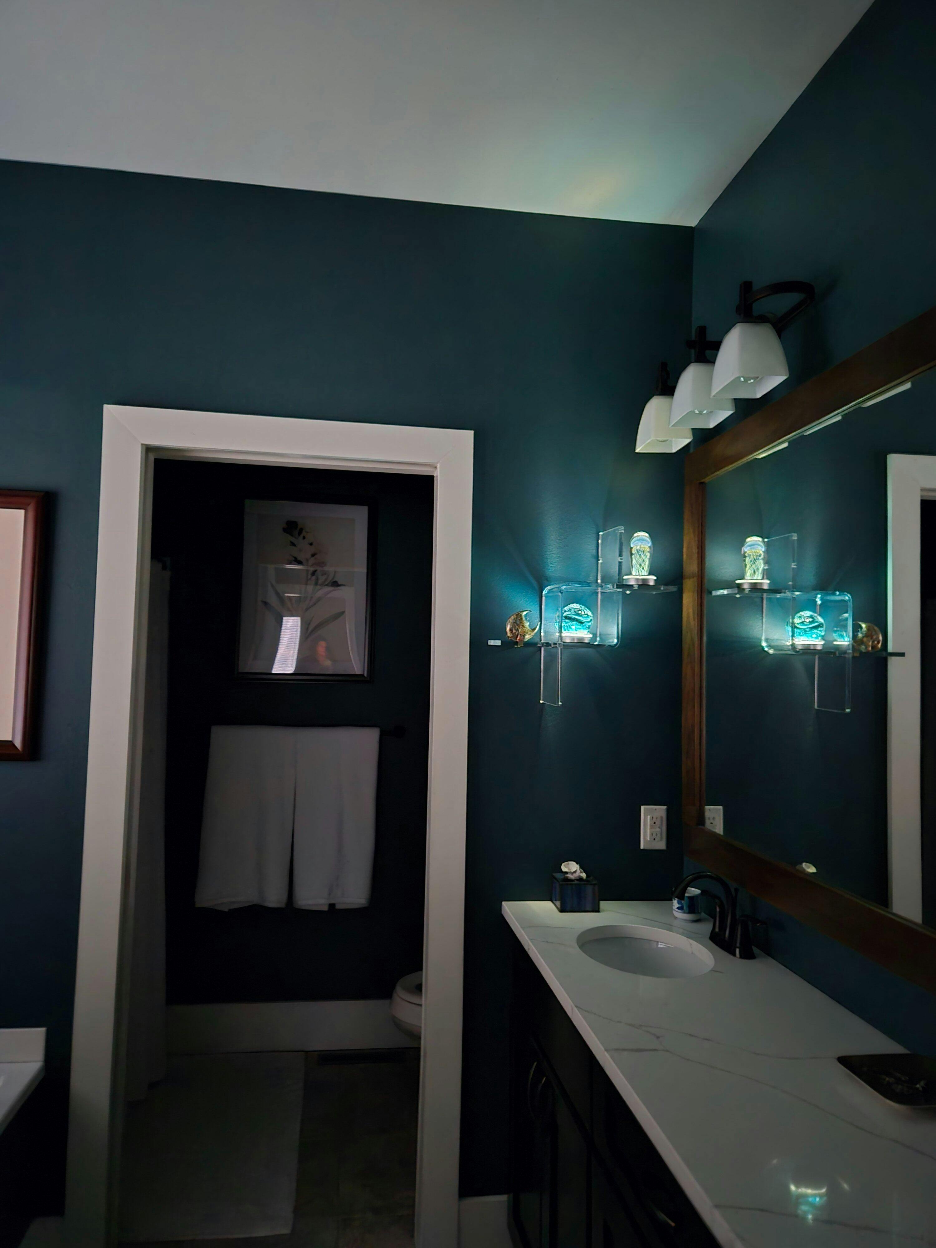 The waterfall stool caught my eye initially because it was the perfect dimensions not just for me, but for custom bathroom -- but the pictures just do not do this piece justice because it's a serious work of art and has elevated my space in so many ways. It's durable and elegant and I highly recommend.