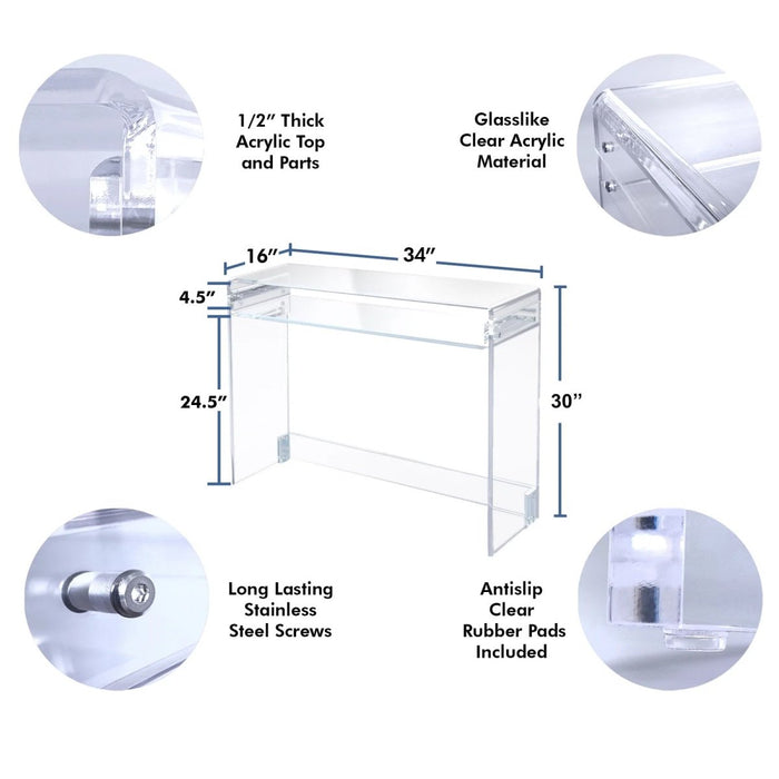This is the original Waterfall Desk from STAUBER Furnishings. Our product is handcrafted in Hollywood, FL. Smooth and minimalist, this elegant piece is sure to bring some unique beauty to the room. Our premium clear acrylic with the highest optical clarity will provide the sensation of a brighter more open space. It's a perfect writing desk or vanity that assembles easily with polished stainless steel fasteners. Our glue-free design ensures it will endure many years of regular use. Pair it with our clear office chair or vanity chair for the perfect writing desk or vanity table set.
